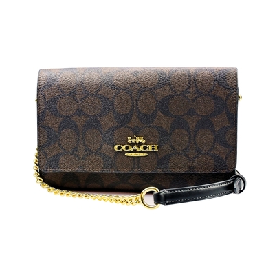 COACH Flap深咖啡C LOGO PVC字牌釦式翻蓋硬殼小款斜背包