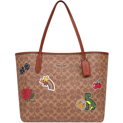 COACH 焦糖色恐龍圖樣大C PVC托特包-大型