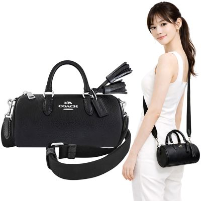 COACH 黑色荔枝紋皮革小型手提/斜背兩用包