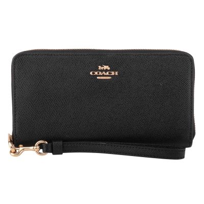 COACH 金馬車防刮皮革掛帶拉鍊長夾(素面黑)