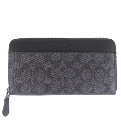 COACH 灰黑色防水布馬車標提把拉鍊長夾$4,014