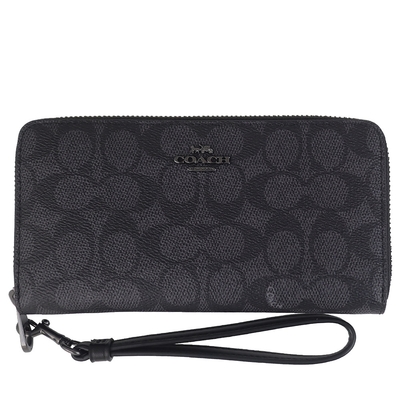 COACH 霧黑馬車防刮LOGO皮革掛帶長夾(黑灰)