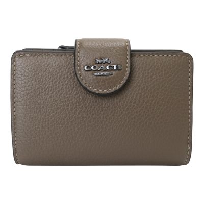 COACH 銀馬車荔枝紋皮革暗釦拉鍊中夾(深褐色)