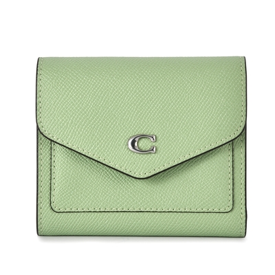 COACH 專櫃款 WYN 素面荔枝紋防刮皮革三折信封短夾-粉綠色$3,5808折