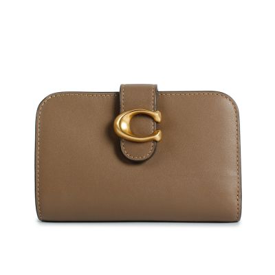 COACH 專櫃款 TABBY 金屬C字 光滑小牛皮壓扣中夾-深石灰色