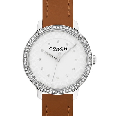 COACH 咖啡色真皮錶帶晶鑽鑲嵌女士腕錶