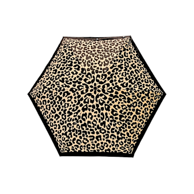 COACH黑色豹紋印花土黃色底輕量攜帶型晴雨傘
