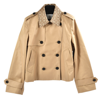 - COACH 雙排釦翻領短版輕盈風衣外套-卡其色 (M號)$8,999