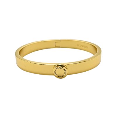 - 美國直送最新飾品COACH金色圓牌LOGO水鑽點綴細版扣式手環$1,480
