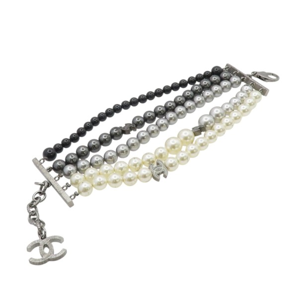 CHANEL 經典水鑽雙C LOGO COCO系列珠珠造型手鍊(銀)