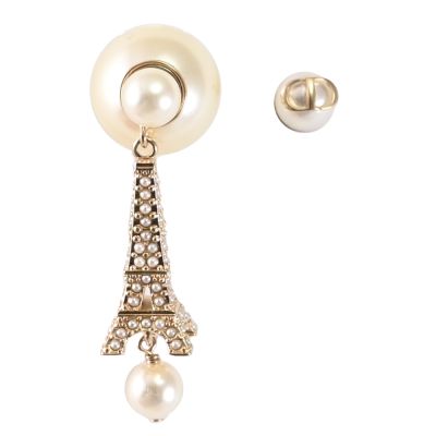 Christian Dior Tribales 艾菲爾鐵塔珠飾不對稱針式耳環(淡金)