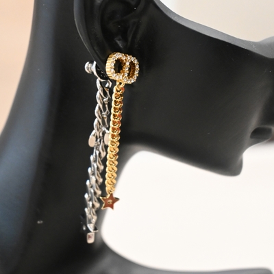 Christian Dior 經典CD LOGO星星鎖鏈撞色垂墜耳環(金/銀)