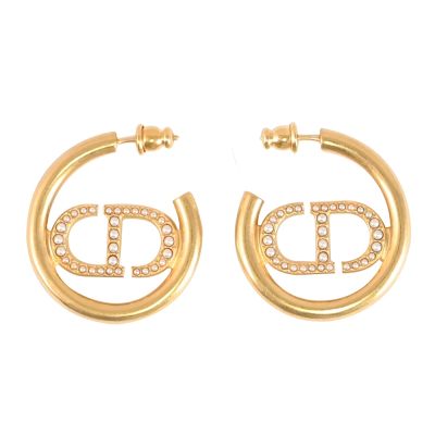 Christian Dior 30 Montaigne 圓環CD LOGO鑲嵌珠飾針式耳環(金)