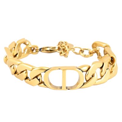 券DIOR 迪奧新款CD圓牌英文字母LOGO水造型手鍊 (淡金)