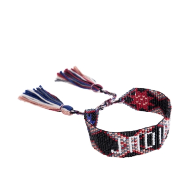 DIOR 迪奧新款波希米亞風「J ADIOR」字母圖案編織珠珠手環 (黑色/單條)