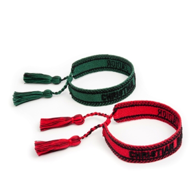 DIOR 迪奧 新款Oblique字母圖案純棉編織手環 (綠色/紅色)