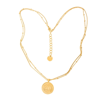 DIOR 迪奧新款30 MONTAIGNE 金色色調圓形金幣金屬雙鍊頸鏈