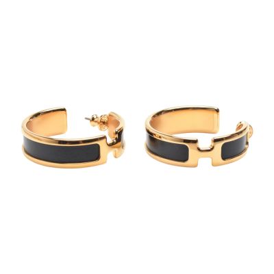 HERMES 經典Olympe earrings系列H LOGO牛皮穿式耳環(金/黑色)$37,810$39,800