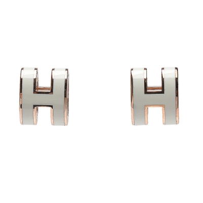 HERMES 經典Pop H立體簍空橢圓LOGO耳環(小_白/玫瑰金)