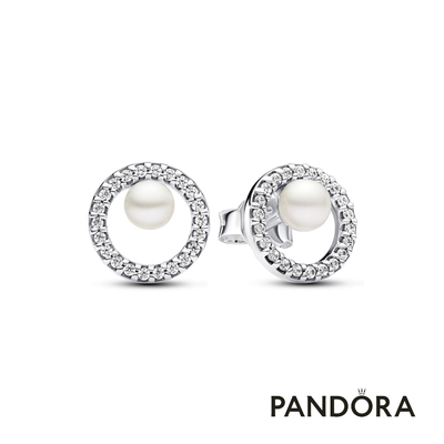 【Pandora官方直營】圓形鑲邊珍珠耳環