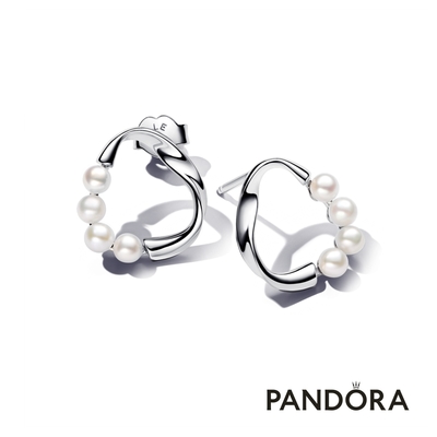 【Pandora官方直營】自然波紋圓圈配巴洛克淡水珍珠耳墜
