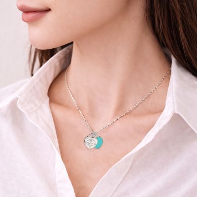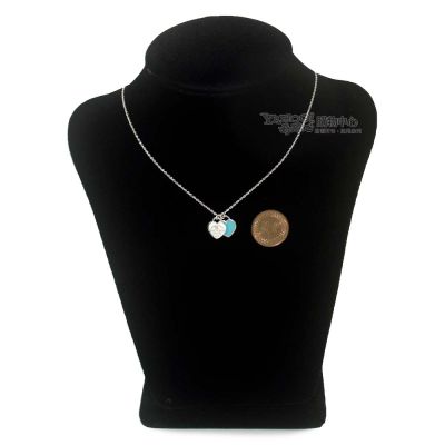Tiffany&Co. 蒂芙尼 迷你雙心藍琺瑯鑲鑽925純銀項鍊(展示品)
