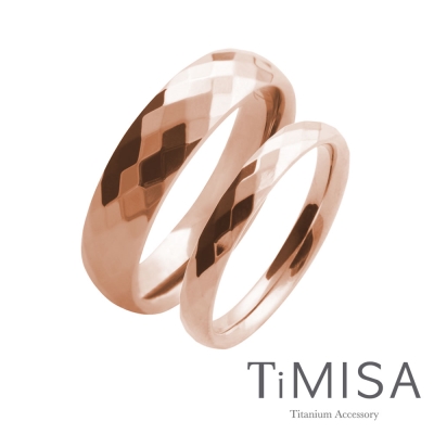 TiMISA《格緻真愛(寬玫瑰金+細玫瑰金)》純鈦對戒