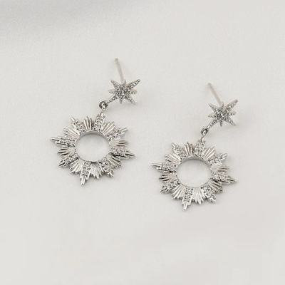 Wanderlust+Co 放射太陽水晶垂式耳環-銀$2,40087折