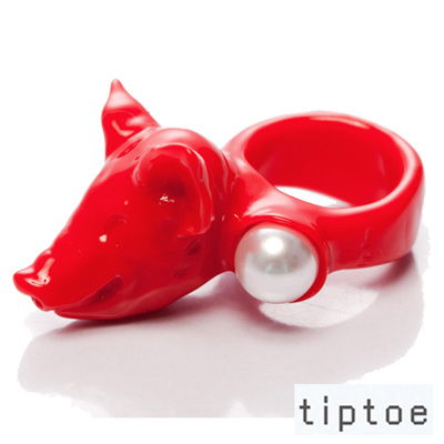 tiptoe by e.m. 逼真小豬頭 壓克力珍珠戒指 (Strong Red)