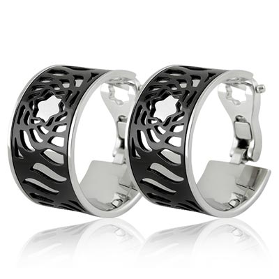 MONT BLANC 萬寶龍 黑色漆面波浪紋寬版純銀耳環