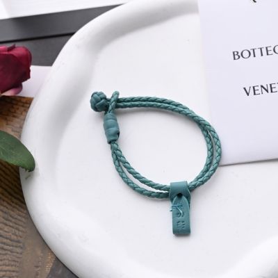BOTTEGA VENETA 經典細版編織款牛皮單圈手環(藍綠)