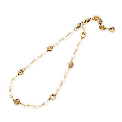 GUCCI 弧紋小圓珠T字釦純銀手鍊