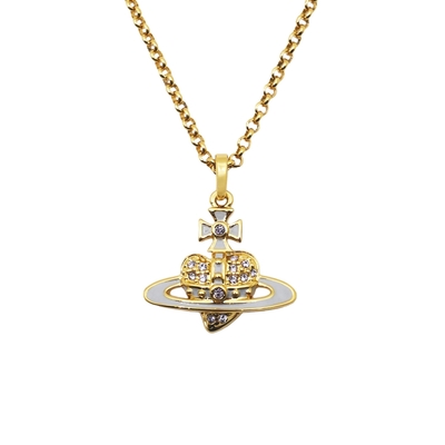 Vivienne Westwood 閃耀紫水晶淺灰琺瑯反向愛心行星土星項鍊 金色