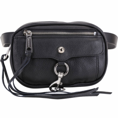 Rebecca Minkoff Blythe 銀釦流蘇飾皮革腰包(黑色)