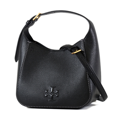TORY BURCH THEA 荔枝紋磁釦手提/斜背二用包-黑色/小