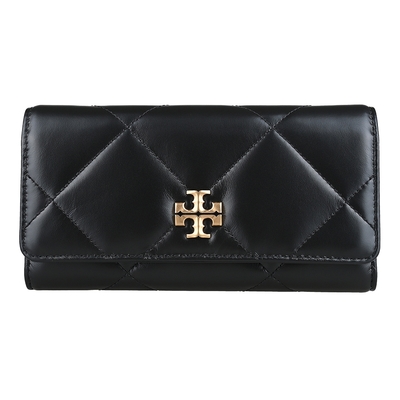 TORY BURCH Kira雙T LOGO菱格絎縫皮革翻蓋磁吸扣式長夾(黑)
