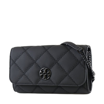 TORY BURCH WILLA 菱格磁釦翻蓋斜背長夾-霧黑