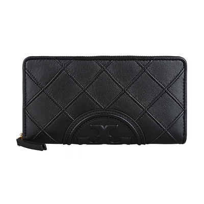 TORY BURCH Fleming圓形浮雕LOGO菱格紋設計納帕牛皮8卡拉鍊長夾(黑)$9,18889折
