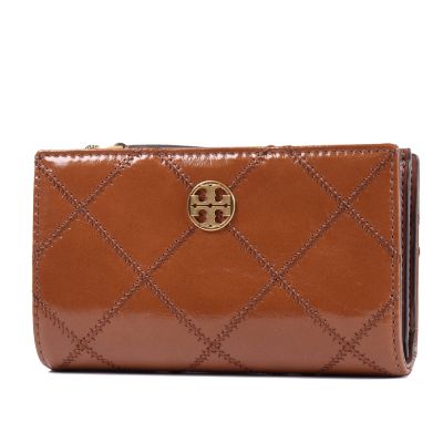 TORY BURCH Willa 菱格紋雙釦對開中夾-焦糖橘棕