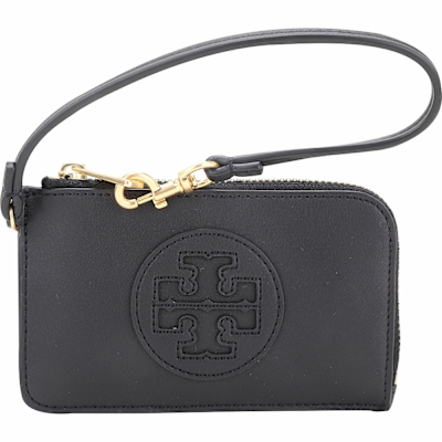 TORY BURCH Ella Bio 可吊掛雙T徽標皮革拉鍊卡片夾/零錢包(黑色)