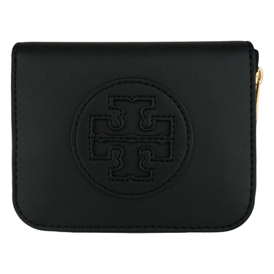 TORY BURCH Ella 標誌皮革ㄇ型拉鍊卡夾/零錢包(黑)