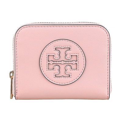 TORY BURCH Ella Bio圓形皮標LOGO優質牛皮4卡拉鍊零錢卡包(小/腮粉紅)