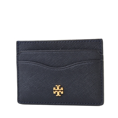 TORY BURCH 金字LOGO防刮皮革名片夾-藍色