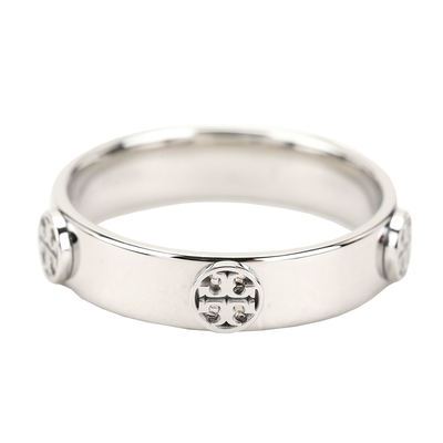TORY BURCH Miller 水鑽飾簍空圓形雙T手環(銀色)