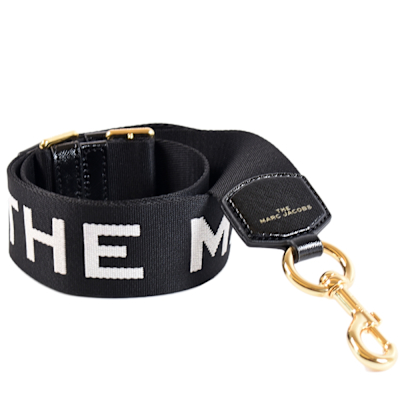 MARC JACOBS 白字品牌帆布寬版背帶-黑色/金釦