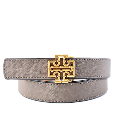 TORY BURCH 金屬鏤空LOGO防刮雙面用窄版皮帶-灰/棕-M