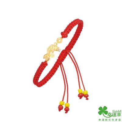 幸運草金飾 錦富貴黃金紅繩編織手環