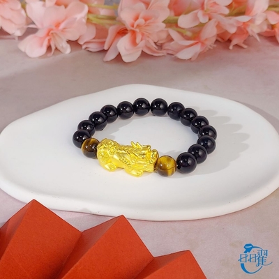 【晶曜珠寶】 黃金/黑玉髓串珠手鍊 招財貔貅 0.96錢$26,13471折