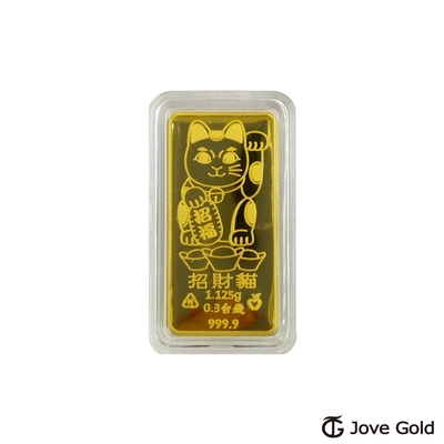 JoveGold漾金飾 貓貓招財黃金條塊 - 0.3台錢(金重三分)