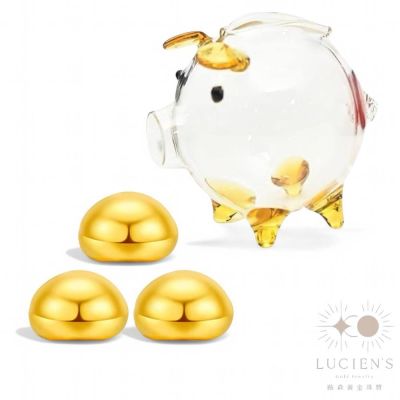 【路森金飾】黃金金豆-1公克3入組金重:0.80錢+-0.03錢(贈可愛豬玻璃撲滿隨機色)